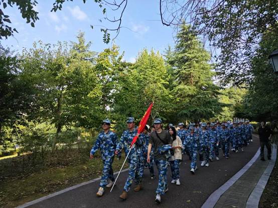 行進途中,軍訓新生精神飽滿、歌聲嘹亮,踏出青春的激揚節奏。教官的指令,班主任的鼓勵和陪伴,引領著同學們前進。一張張青澀稚嫩的笑臉,一個個英姿颯爽的背影,構成了最靚麗的風景線。行至中途,雖然同學們身體漸漸疲憊,步伐稍感沉重,但頑強的意志引領大家堅定地邁向終點。
