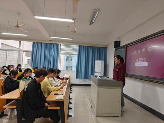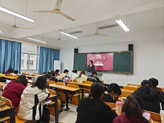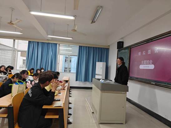 活動(dòng)伊始,駱老師針對(duì)在面試過程中可能出現(xiàn)的具體問題,從行為舉止到儀容儀表,從面試題目到邏輯思維等進(jìn)行詳細(xì)地面試輔導(dǎo)。隨后,面試官依據(jù)學(xué)生個(gè)人特點(diǎn)及應(yīng)聘崗位情況進(jìn)行現(xiàn)場(chǎng)提問,每位同學(xué)依次進(jìn)行自我介紹、回答面試問題、應(yīng)對(duì)面試官的提問等。最后,駱老師進(jìn)行總結(jié)點(diǎn)評(píng),希望同學(xué)們通過本次模擬面試,吸取寶貴經(jīng)驗(yàn),發(fā)現(xiàn)并改進(jìn)不足,增強(qiáng)自信心,提前適應(yīng)職場(chǎng)。