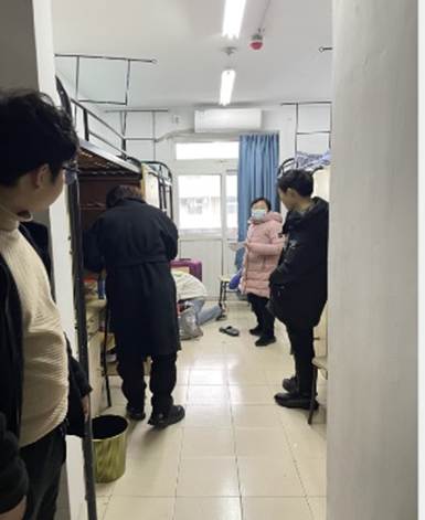 宿舍的接待也是井然有序,學院老師們走訪每一間新生宿舍,看望新生,并解決新生住宿的問題,讓報到的新生感受到家的溫馨。