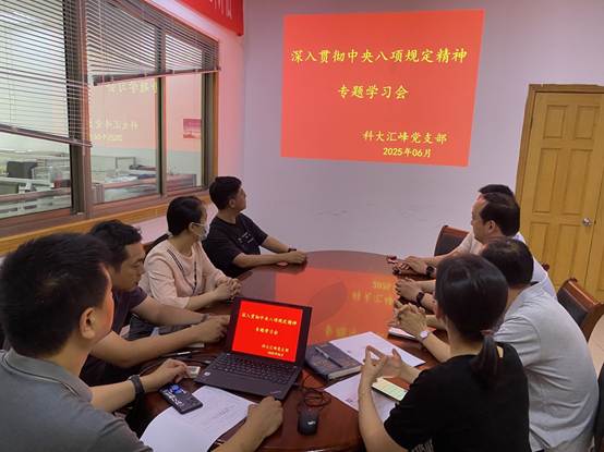 2025年6月6日,科大匯峰黨支部在公司二樓會議室召開圍繞習(xí)近平總書記關(guān)于加強黨的作風(fēng)建設(shè)的重要論述和中央八項規(guī)定及其實施細則精神專題學(xué)習(xí)會,會議由支部副書記湯貞飛主持,支部全體黨員、積極分子參加。